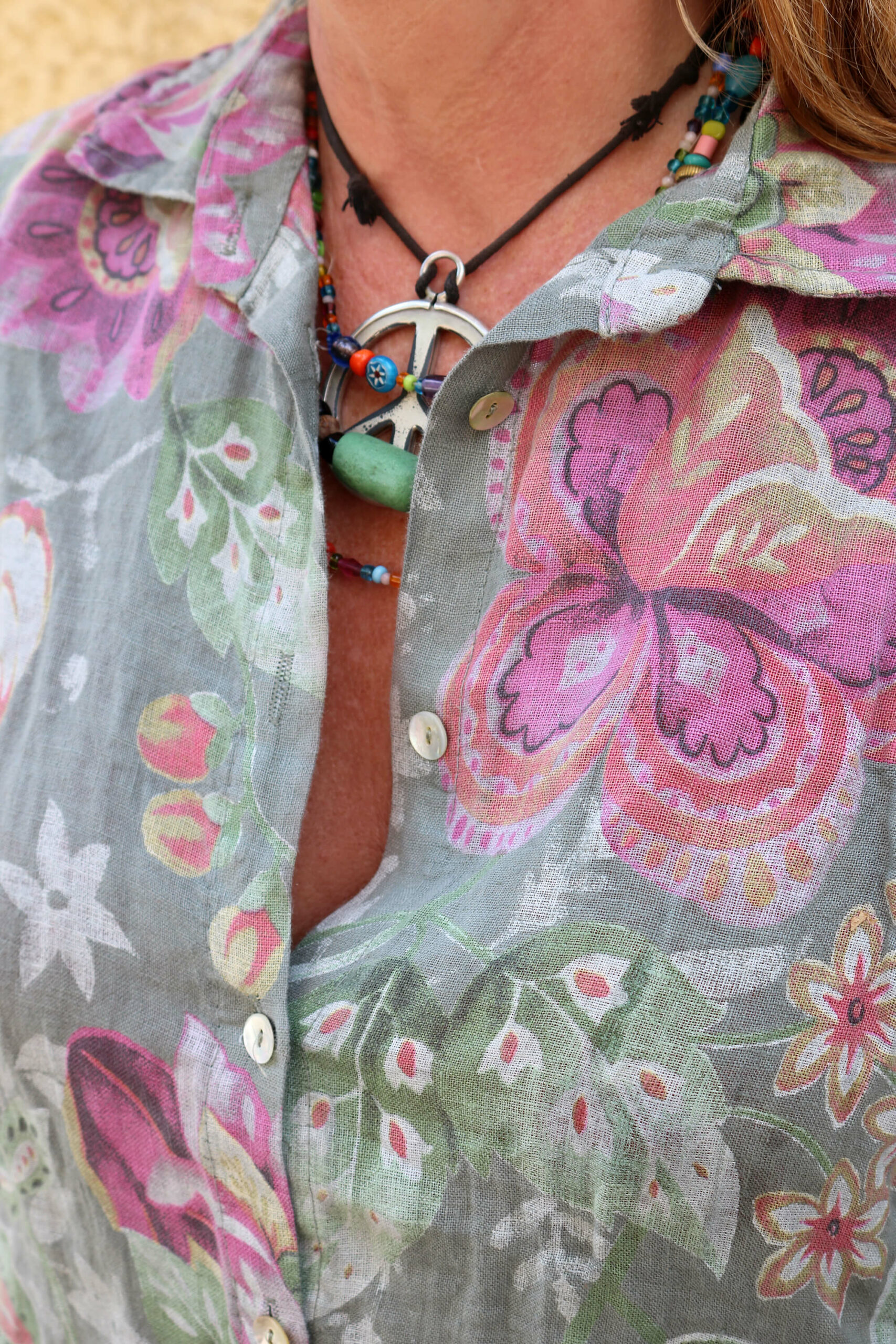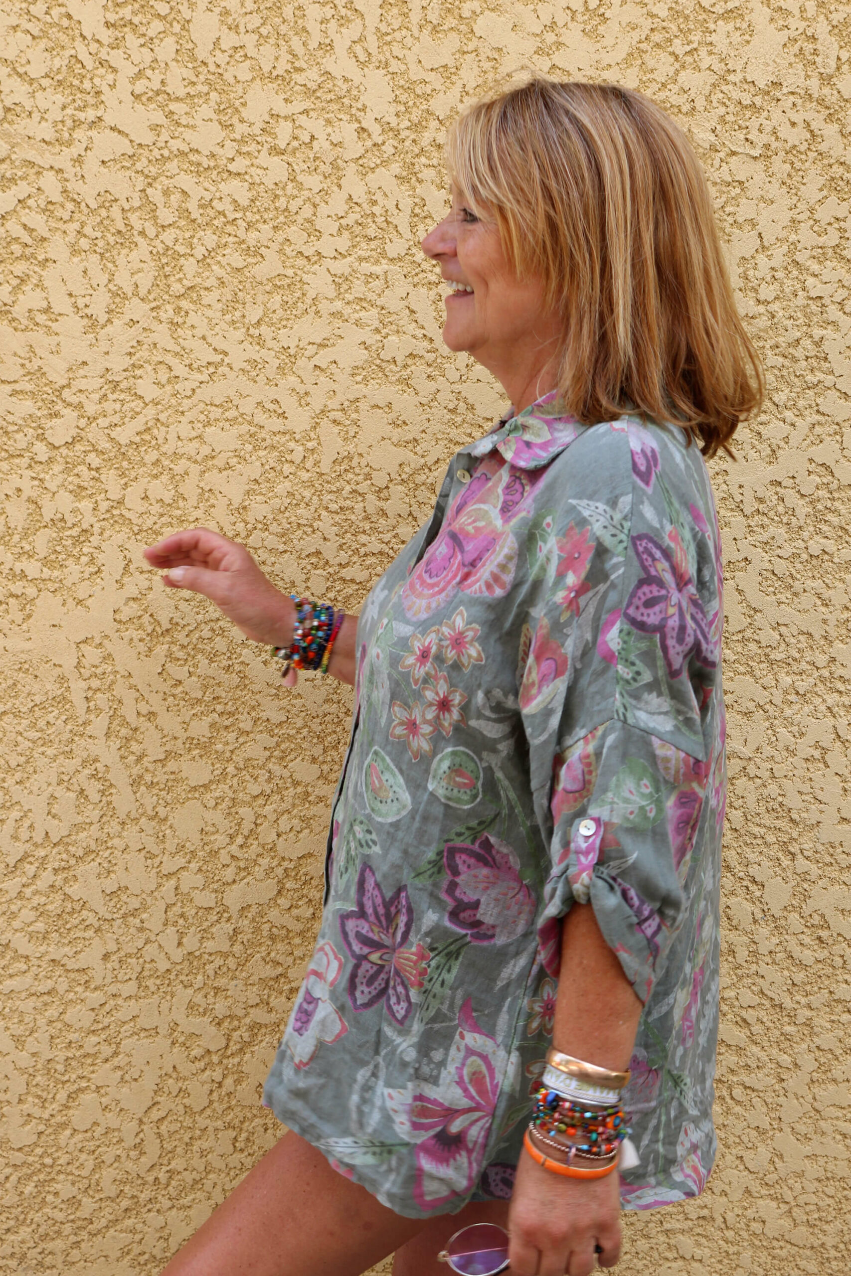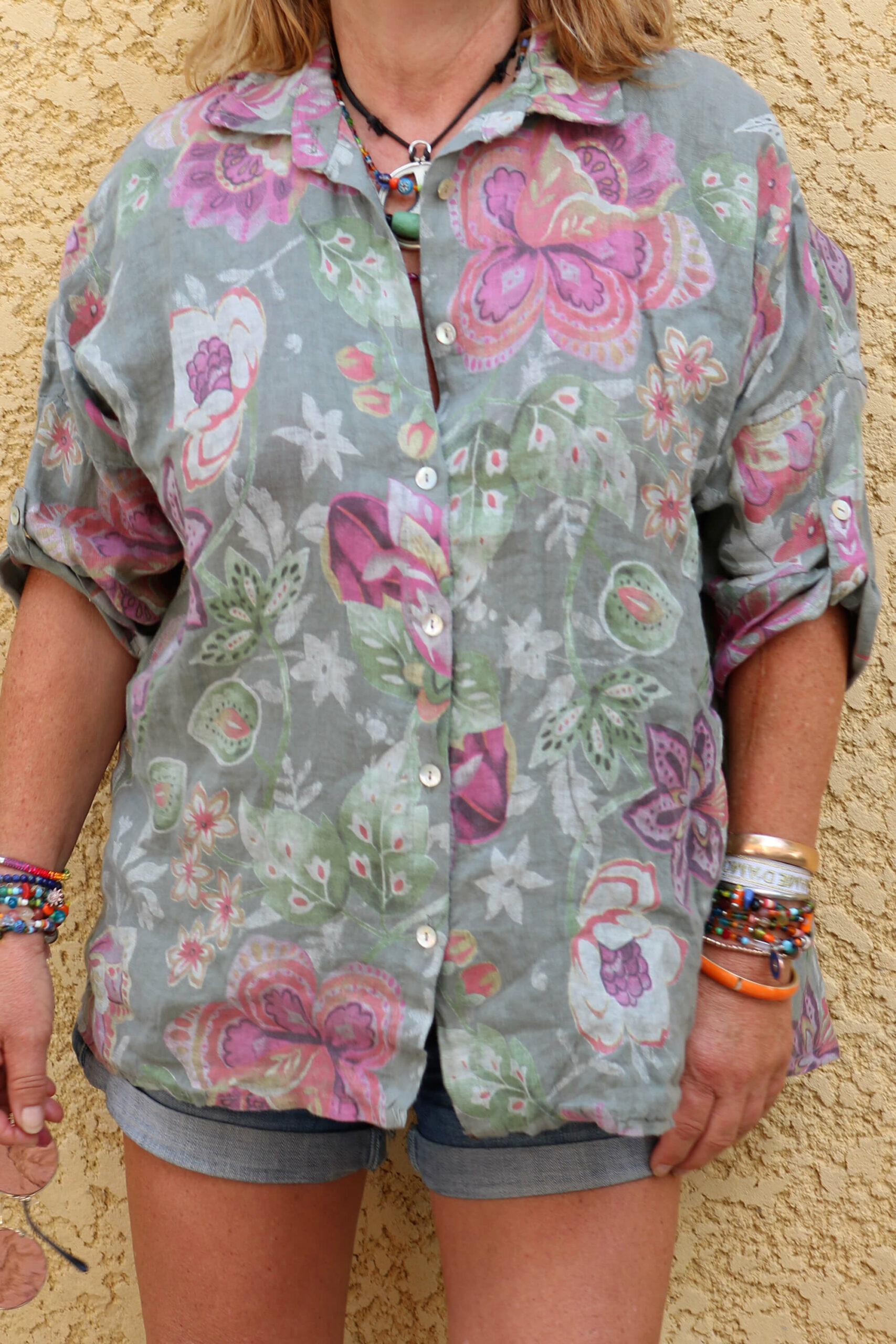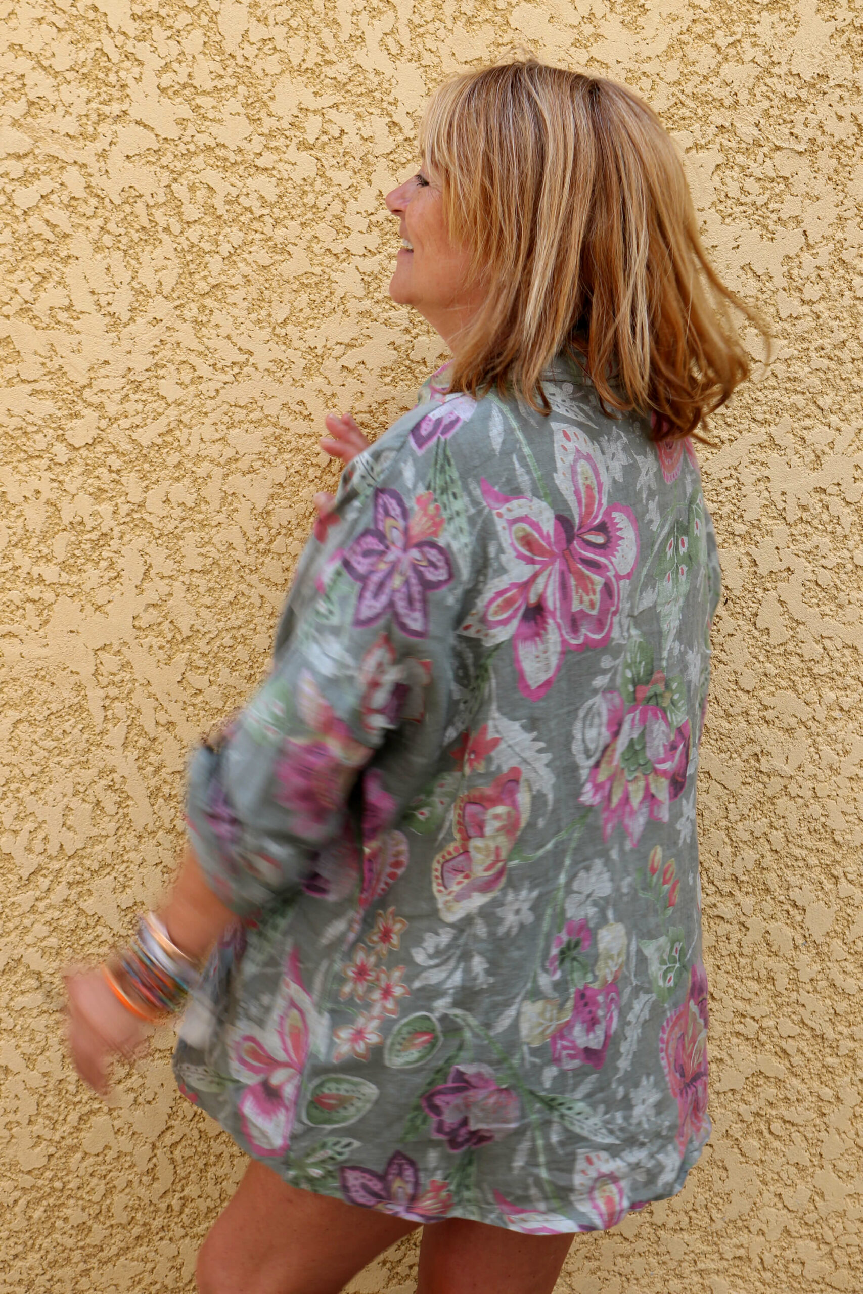 CHEMISE EN LIN FLEURIE KAKI – MAUPITI