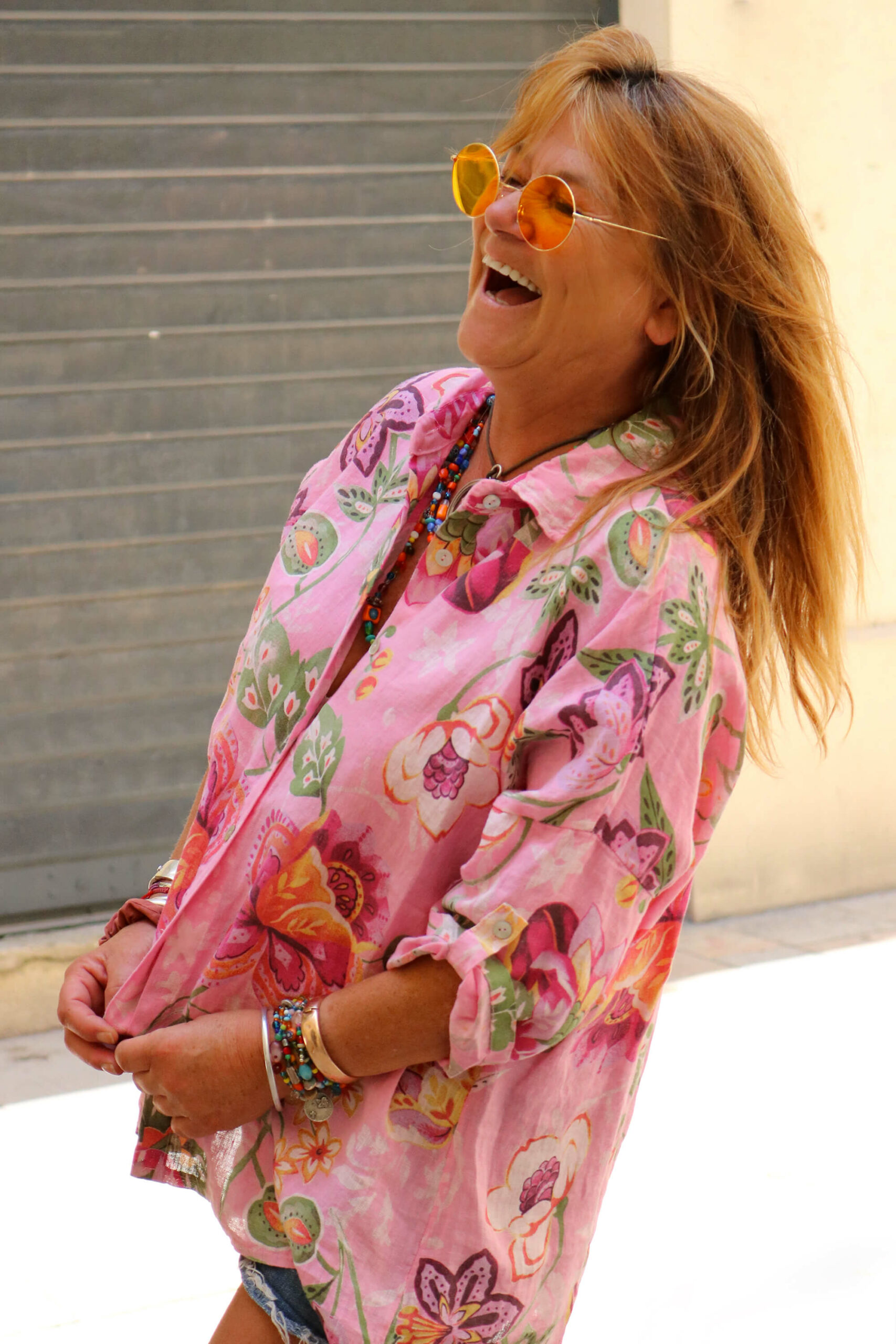 CHEMISE EN LIN FLEURIE ROSE – MAUPITI