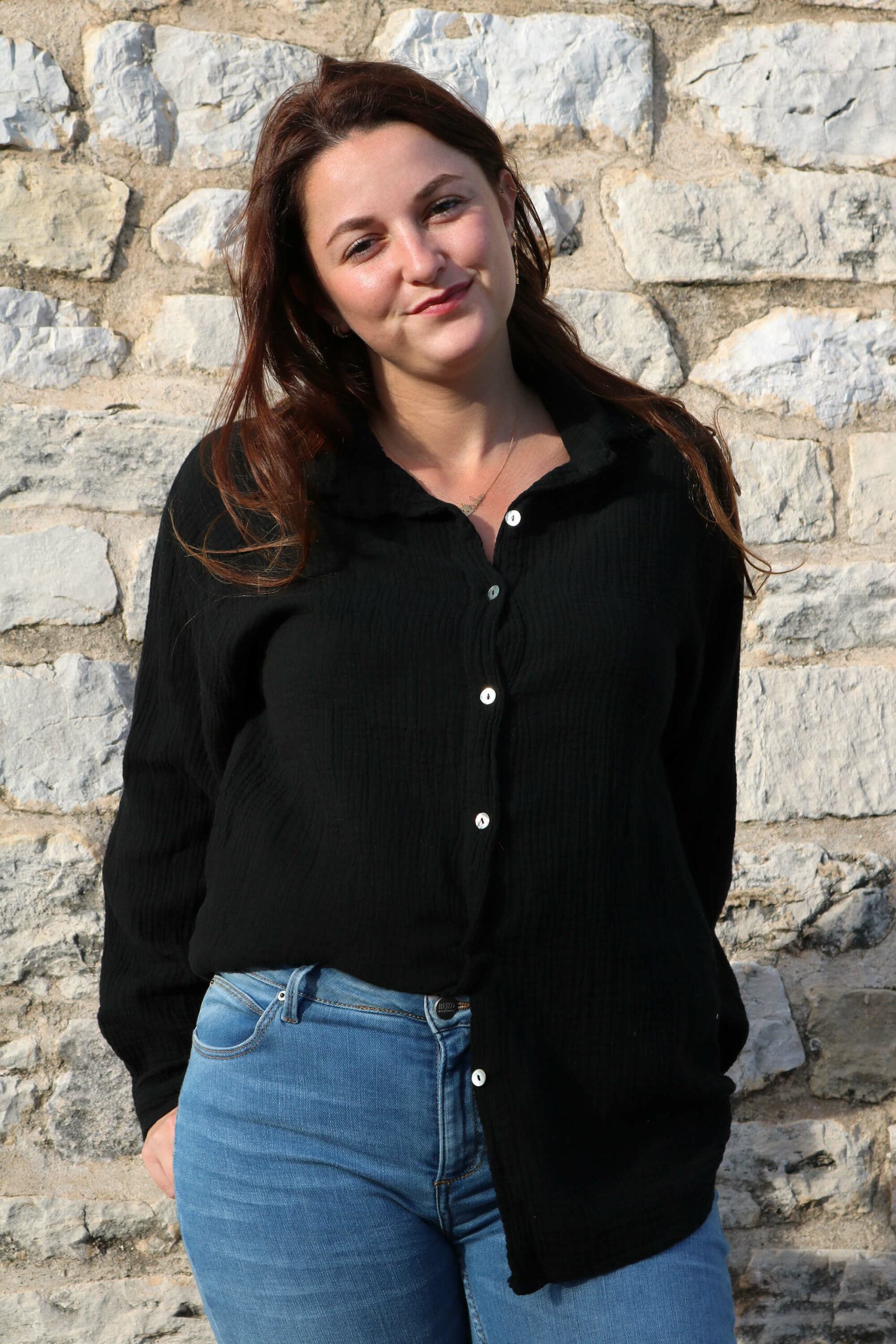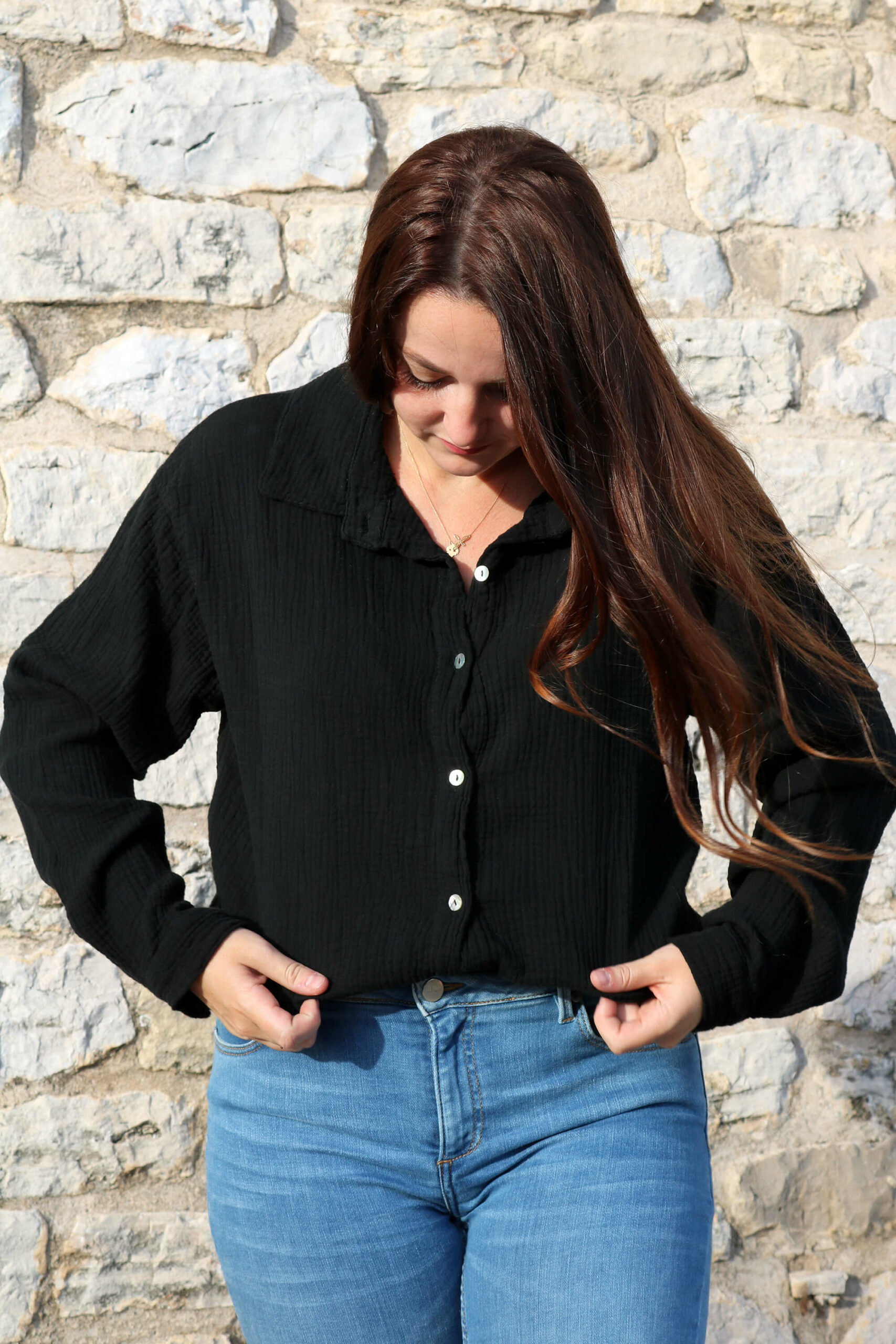 CHEMISE NOIR EN GAZE DE COTON – RAIANA