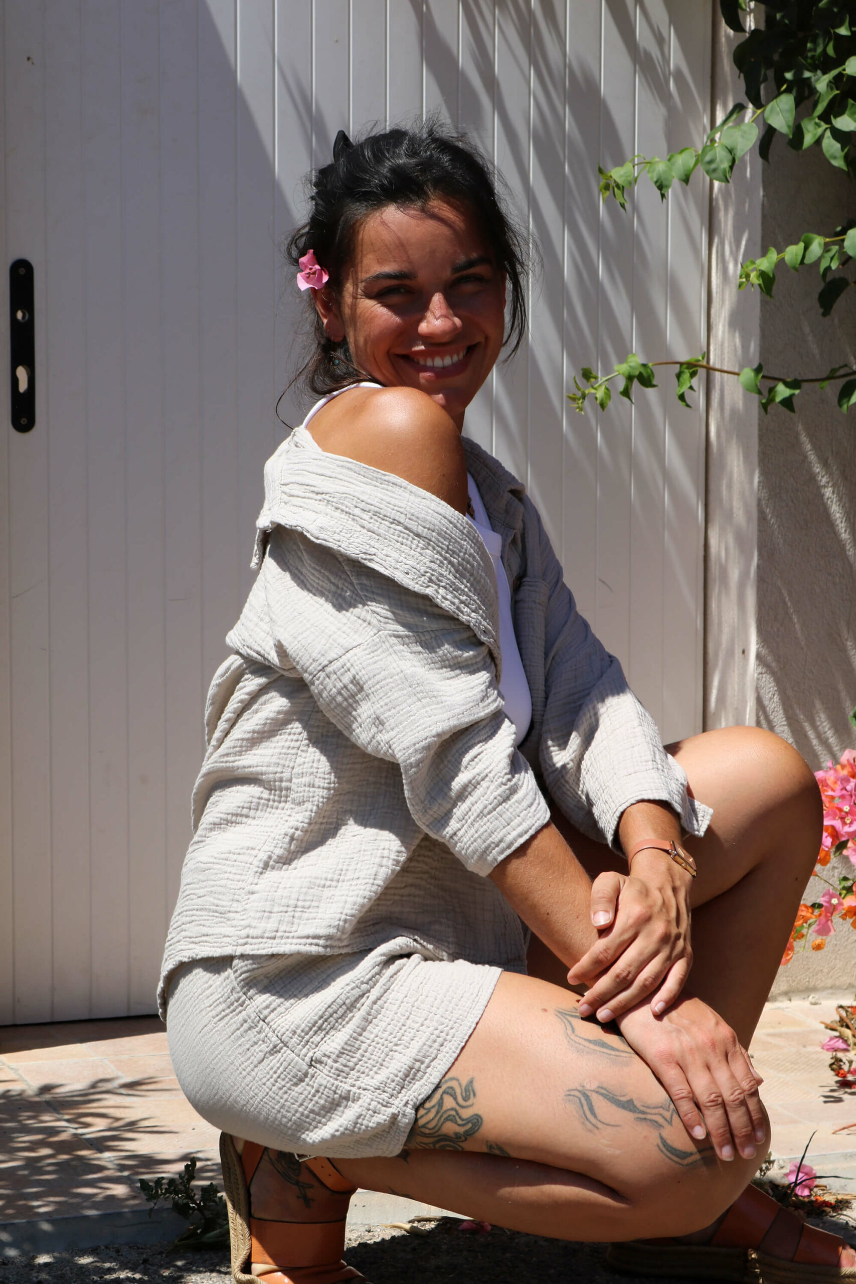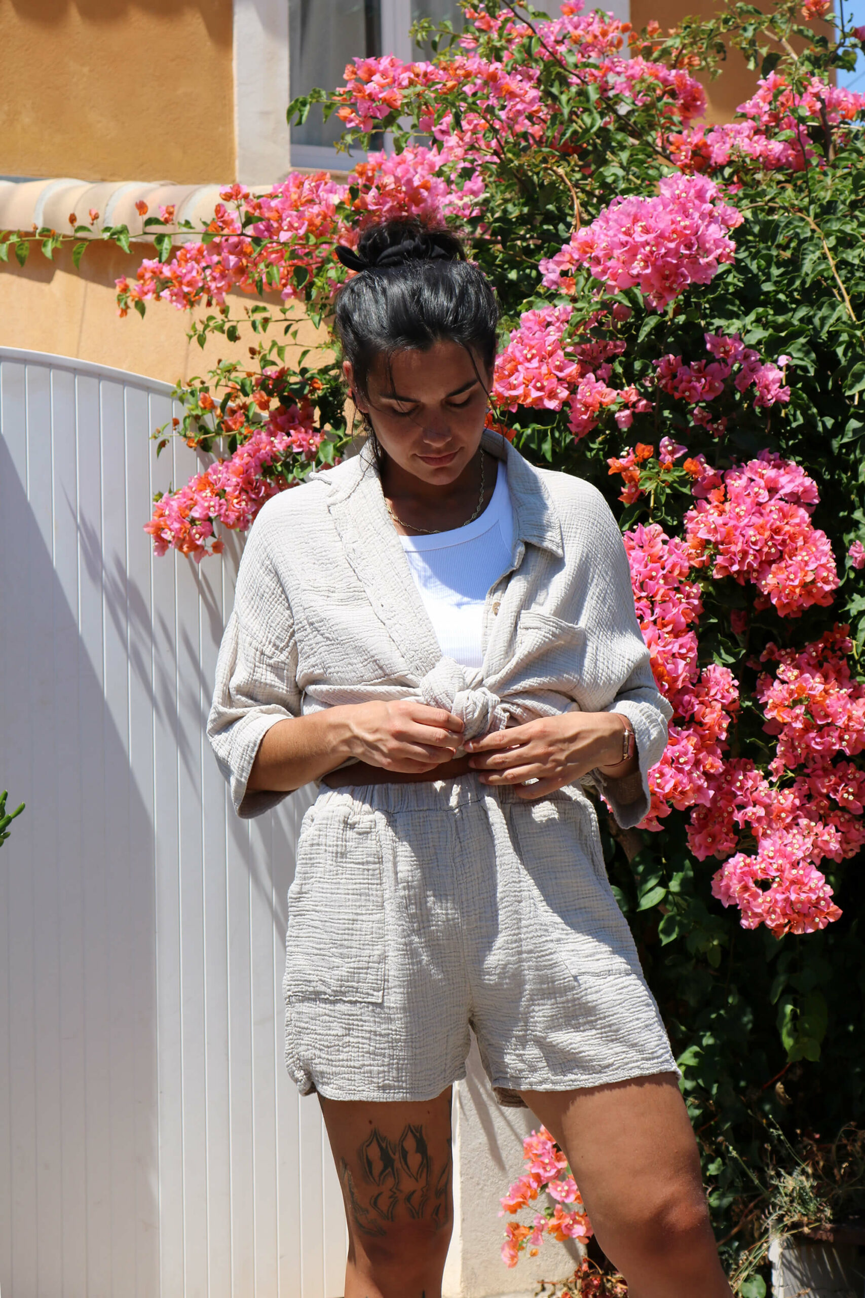 / Ensemble chemise short gaze de coton beige – Eperona