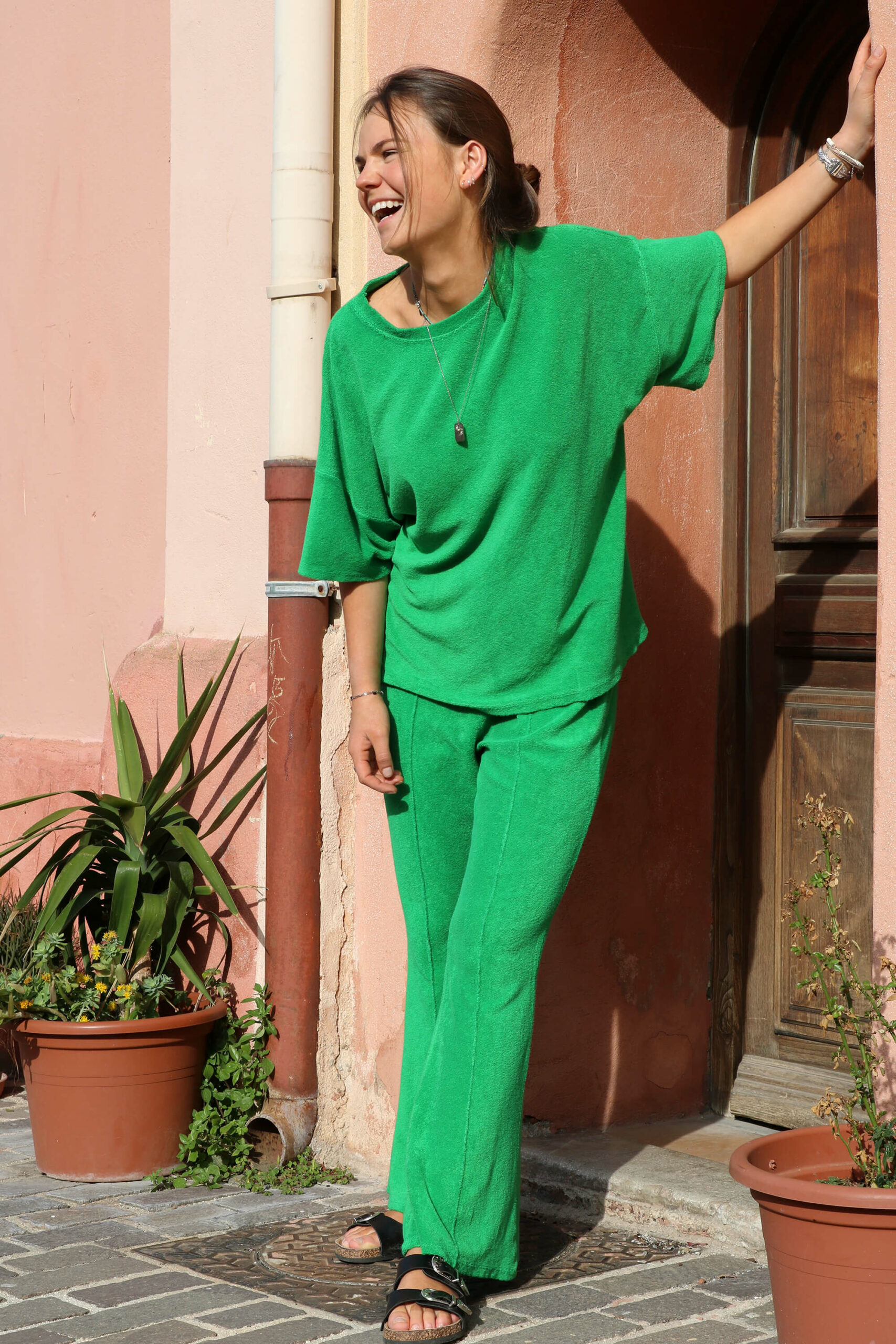 Vous êtes à la recherche de l’ensemble chill parfait ? Cet ensemble détente tout doux est fait pour vous, et vous ne le quitterez plus… Agréable à porter en toutes saisons, l’éponge est une matière douce, confortable et réconfortante qui fait son grand retour, pour notre plus grand bonheur !