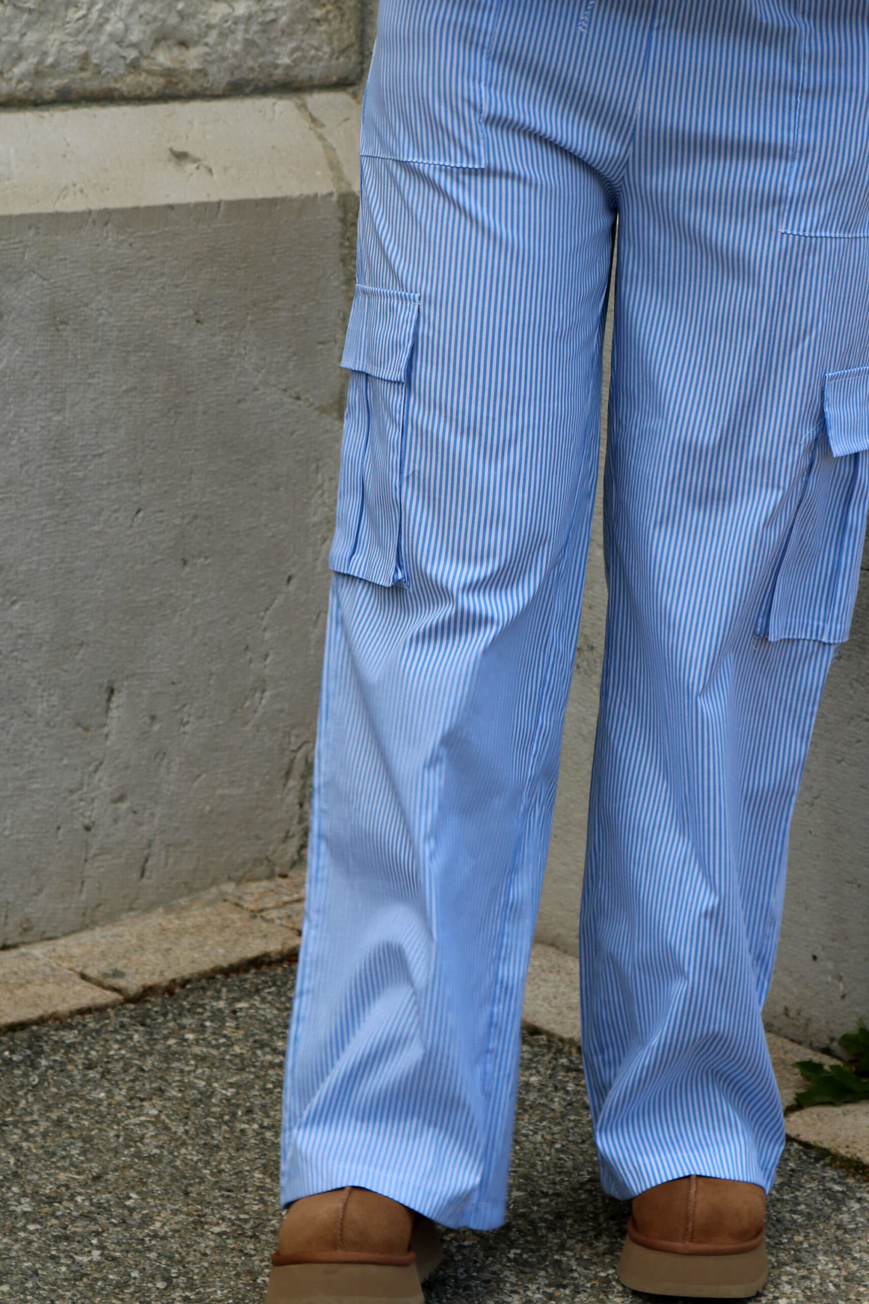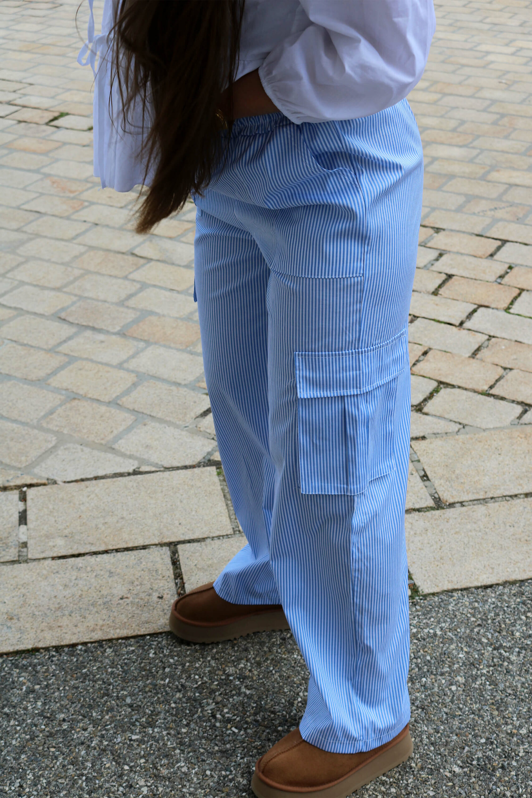 PANTALON CARGO FEMME À RAYURES BLEU – FENUA