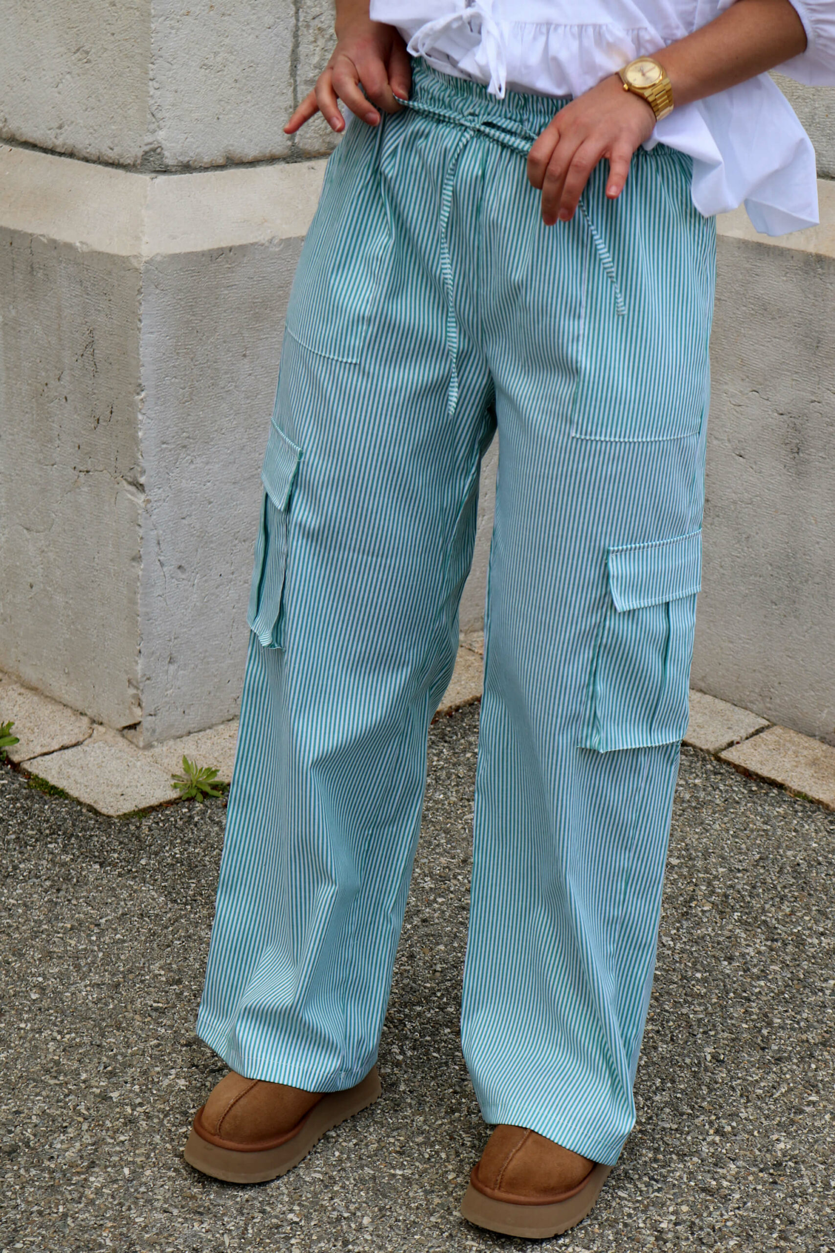 PANTALON CARGO FEMME À RAYURES VERT – FENUA