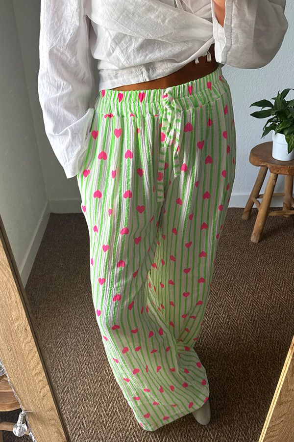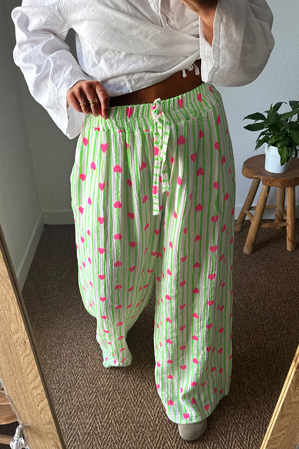 PANTALON EN GAZE DE COTON À RAYURES VERTES AVEC COEURS – TIMERI
