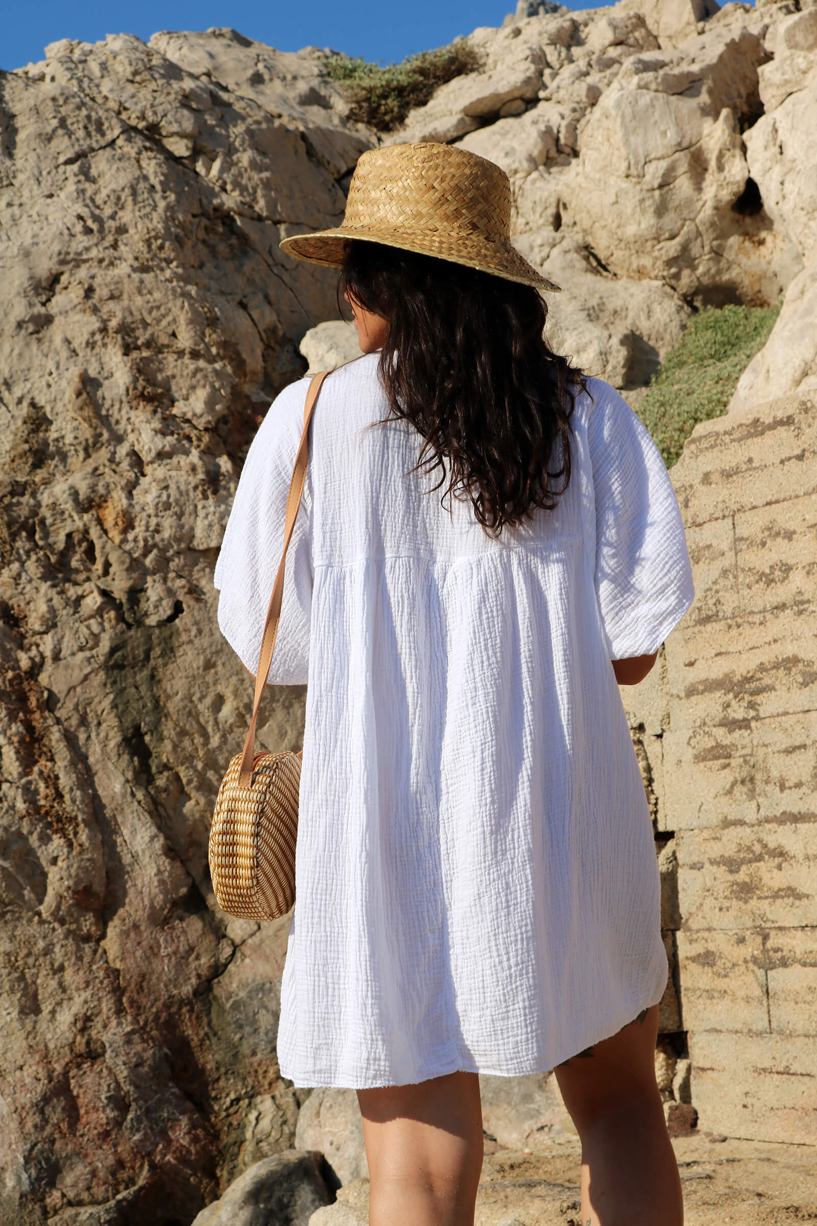 ROBE COURTE EN GAZE DE COTON BLANCHE – TEVA