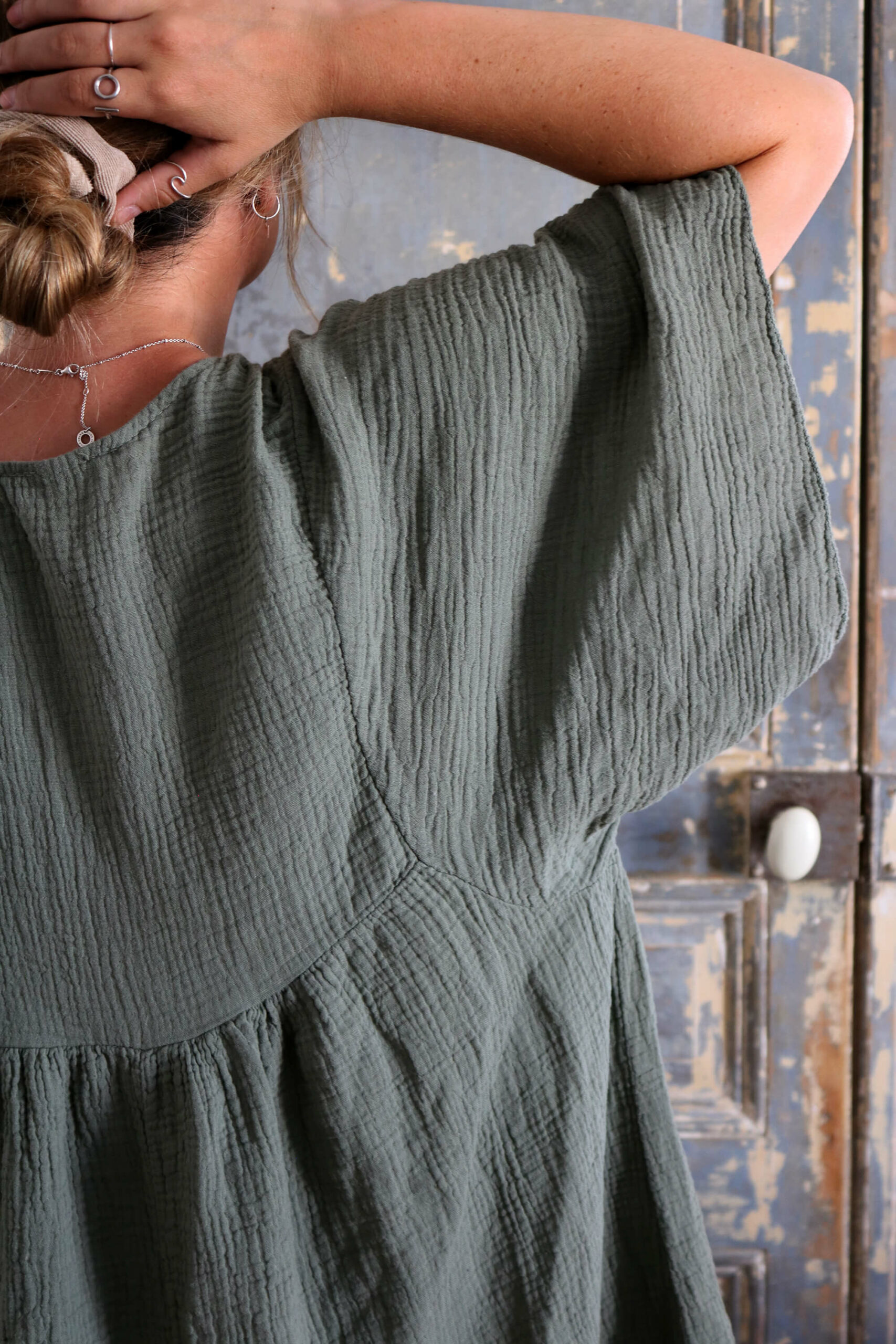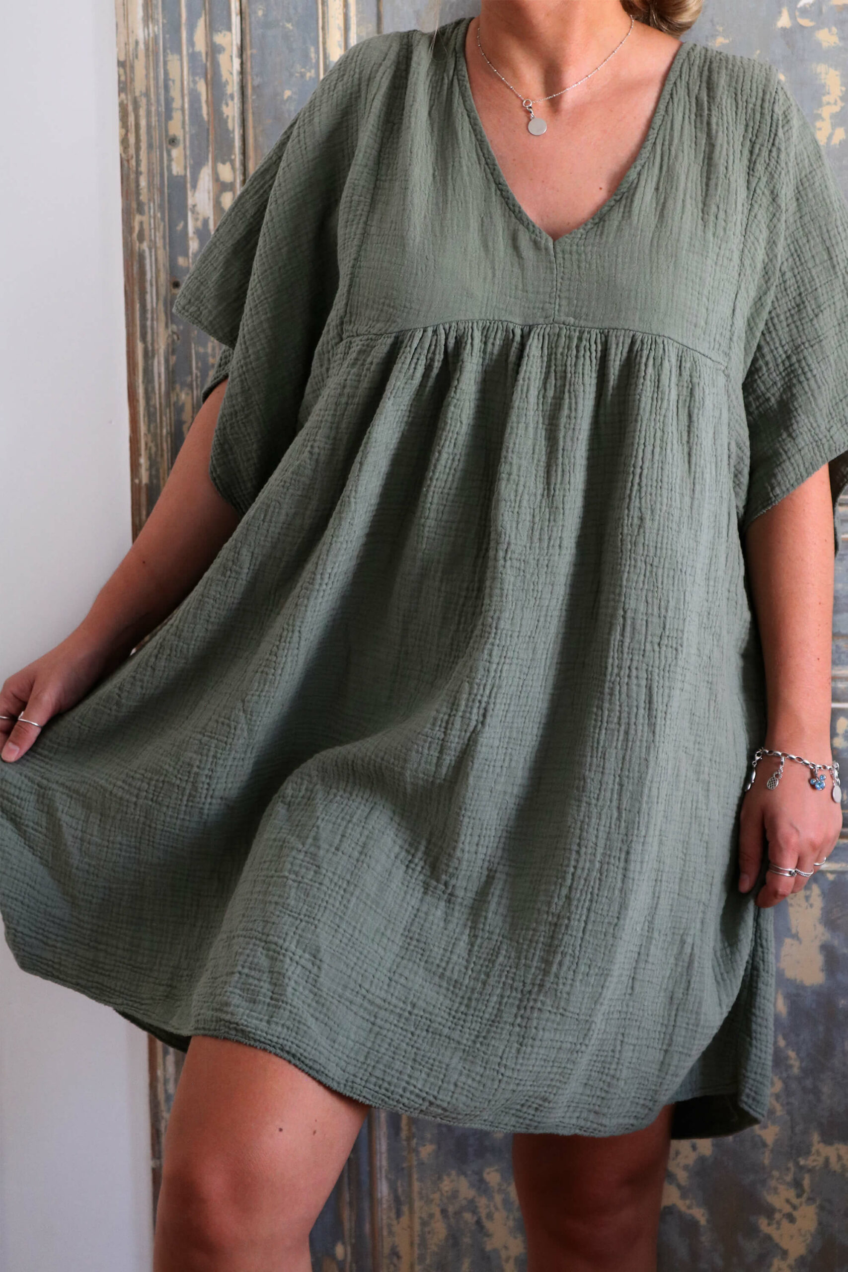 ROBE COURTE EN GAZE DE COTON KAKI – TEVA