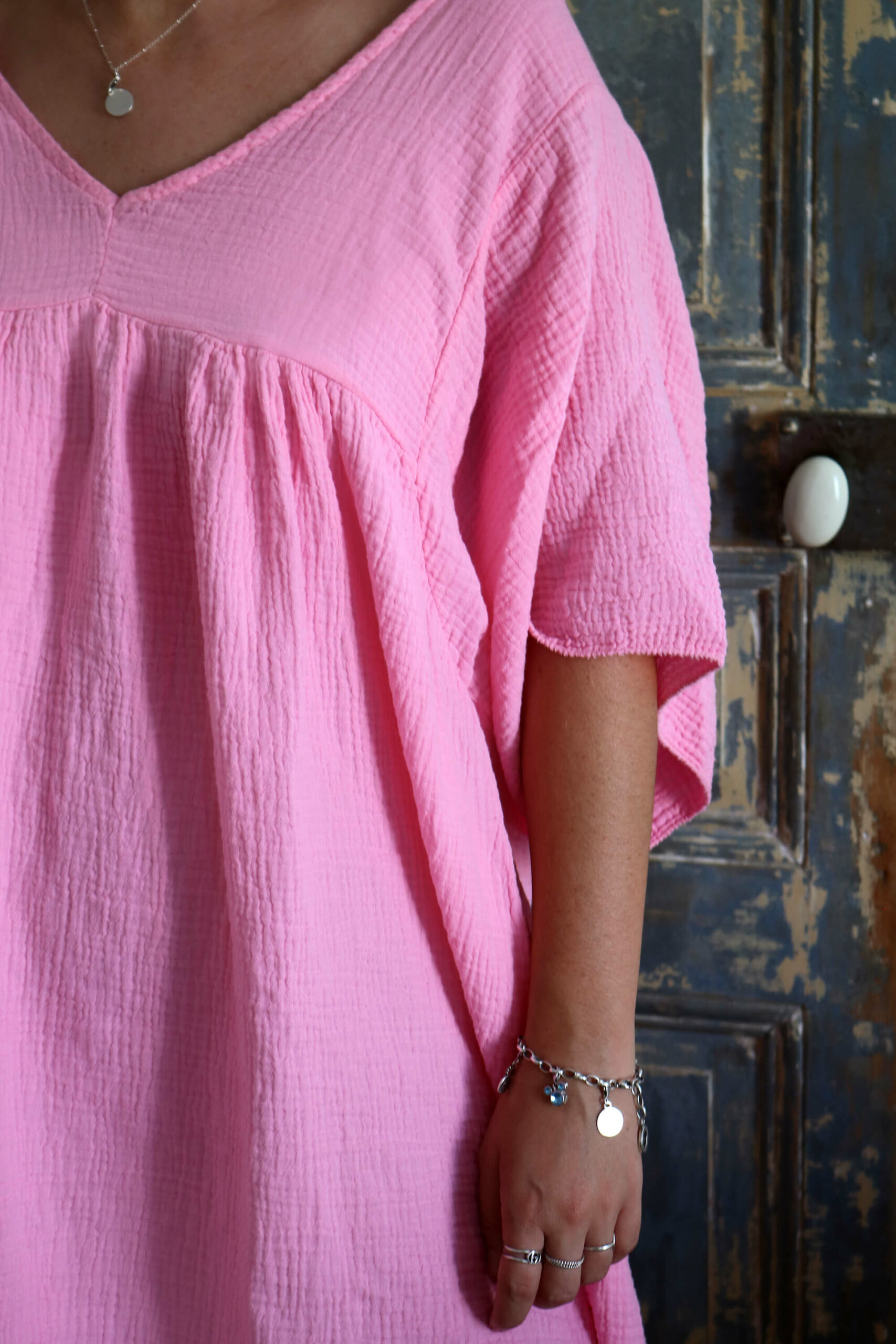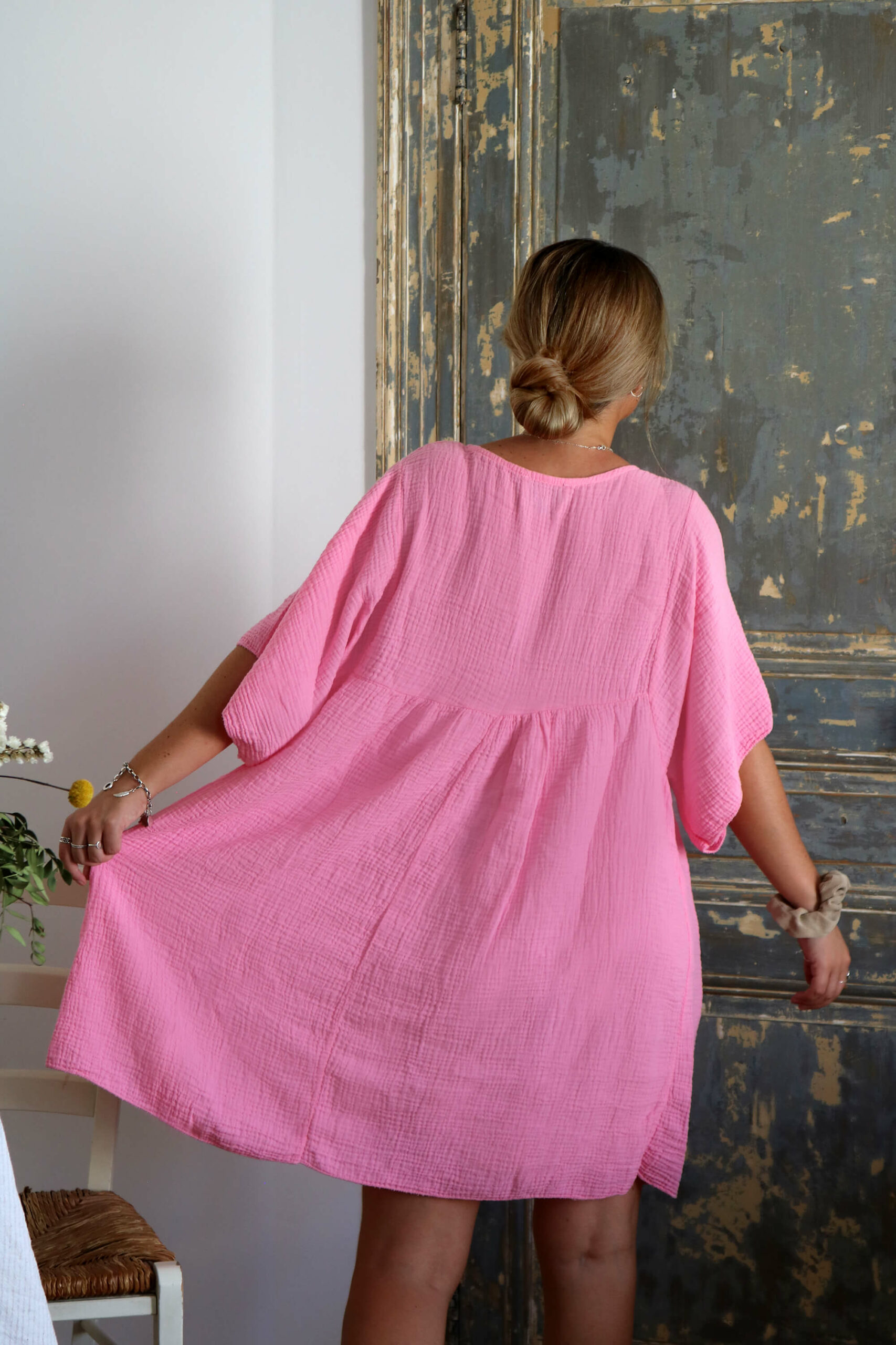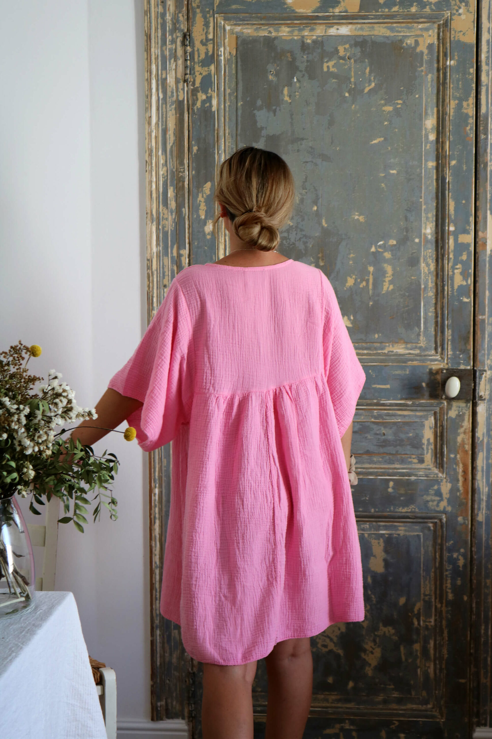 ROBE COURTE EN GAZE DE COTON ROSE PÂLE – TEVA