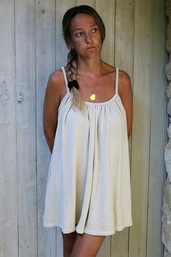 ROBE COURTE MATIÈRE ÉPONGE BEIGE – PAHI