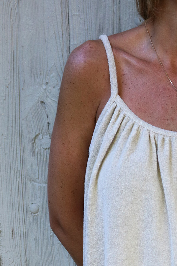 Légère, douce et féminine, la robe courte en éponge beige est la pièce parfaite pour l’été. Avec son col rond, ses fines bretelles et sa coupe vaporeuse, elle offre un style simple et chic qui met en valeur les petites tailles. Son tissu éponge ultra confortable en fait une robe idéale aussi bien pour la plage que pour une sortie en ville. Un essentiel estival à la fois pratique, élégant et facile à porter !