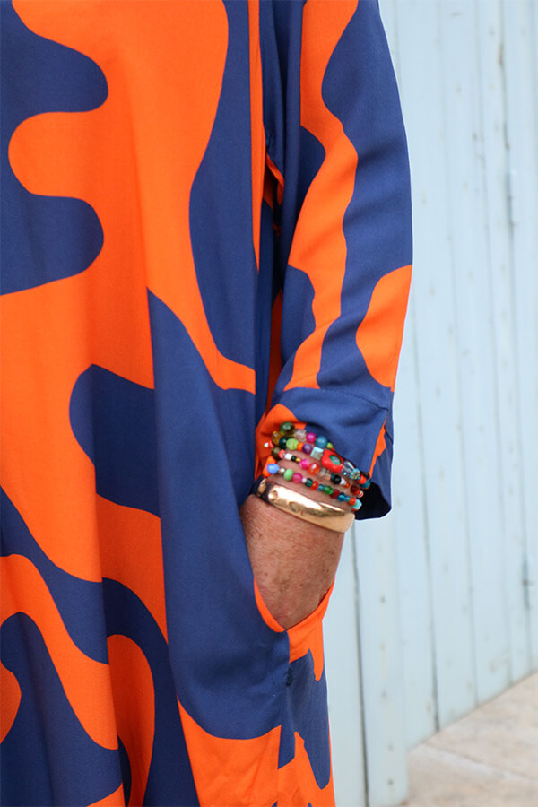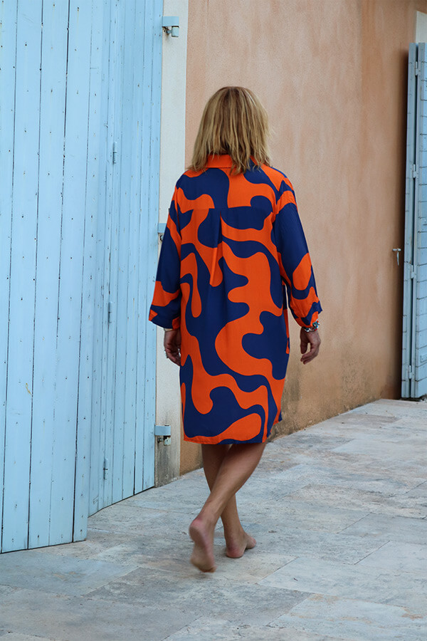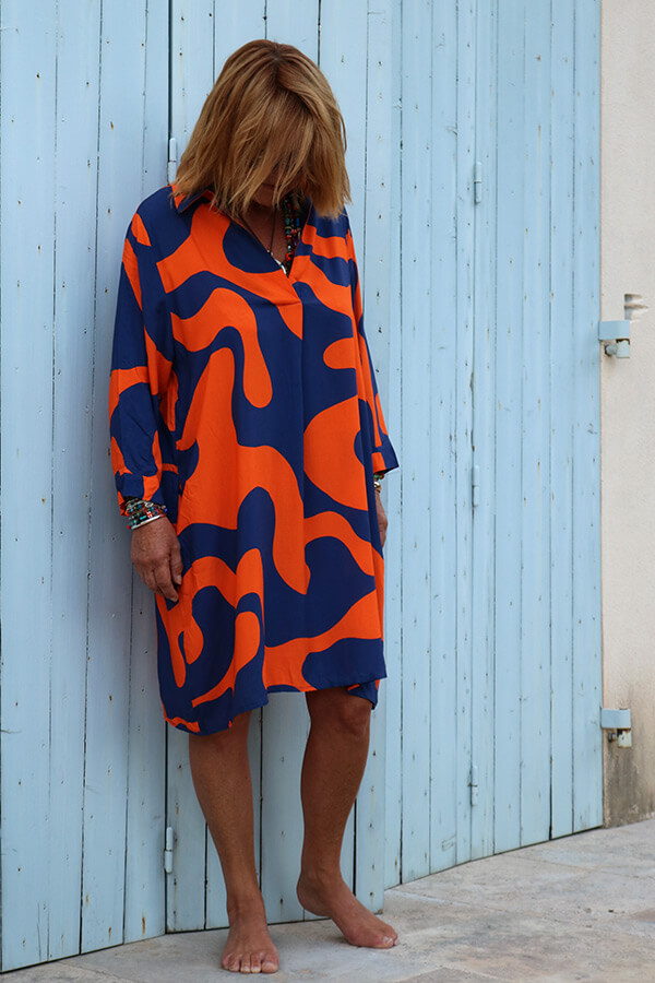 ROBE FLUIDE COLORÉE ORANGE ET BLEU MARINE – ANUANUA