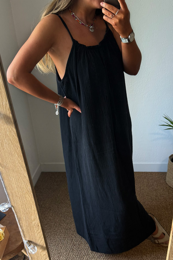 ROBE LÉGÈRE EN GAZE DE COTON NOIR – NOANOA
