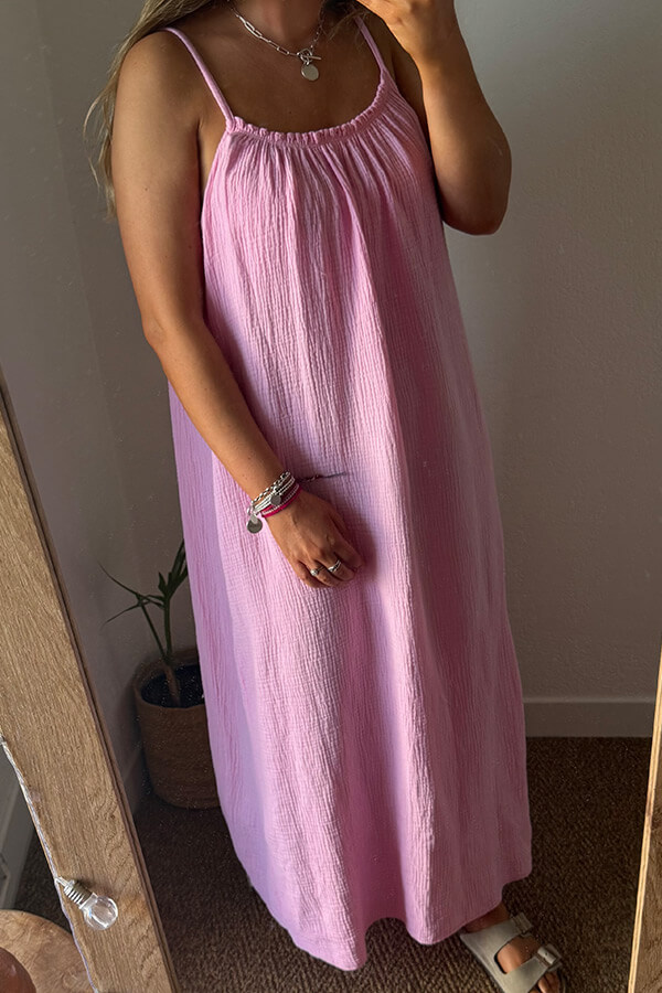 ROBE LÉGÈRE EN GAZE DE COTON ROSE – NOANOA