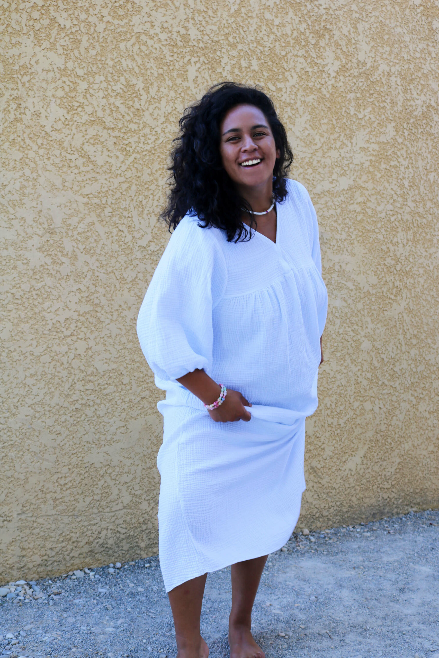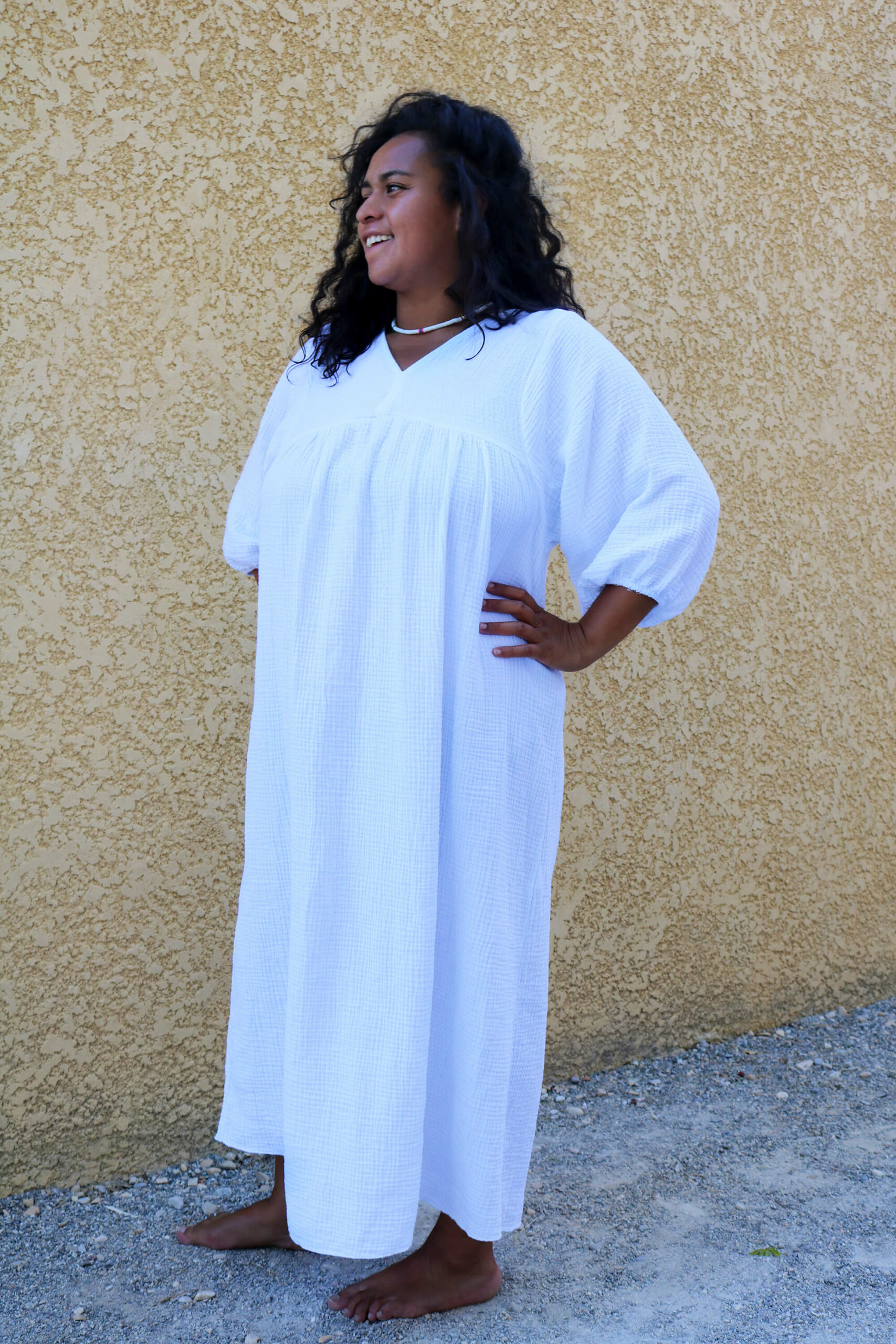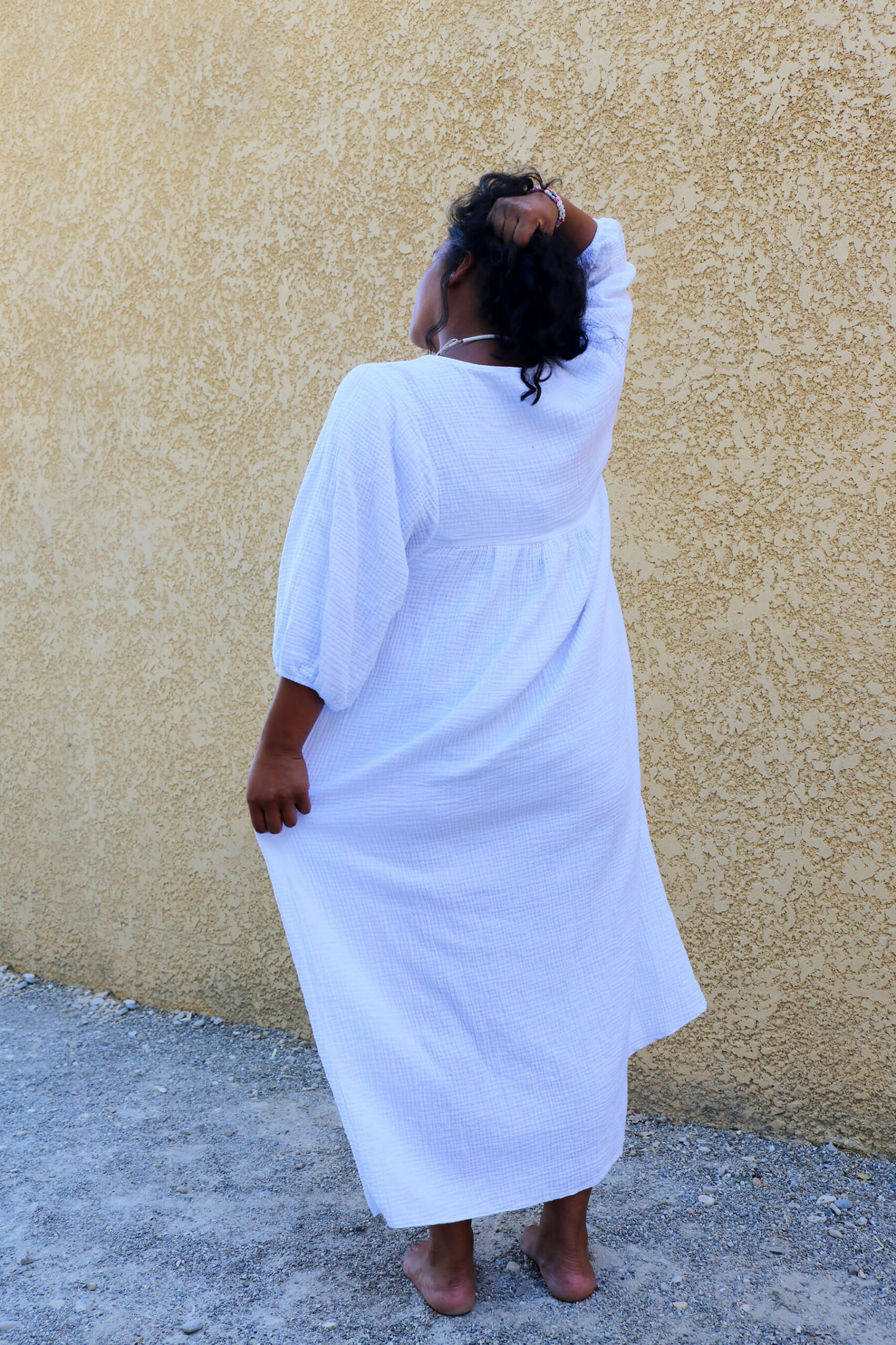 ROBE LONGUE EN GAZE DE COTON BLANCHE – TEMIHI