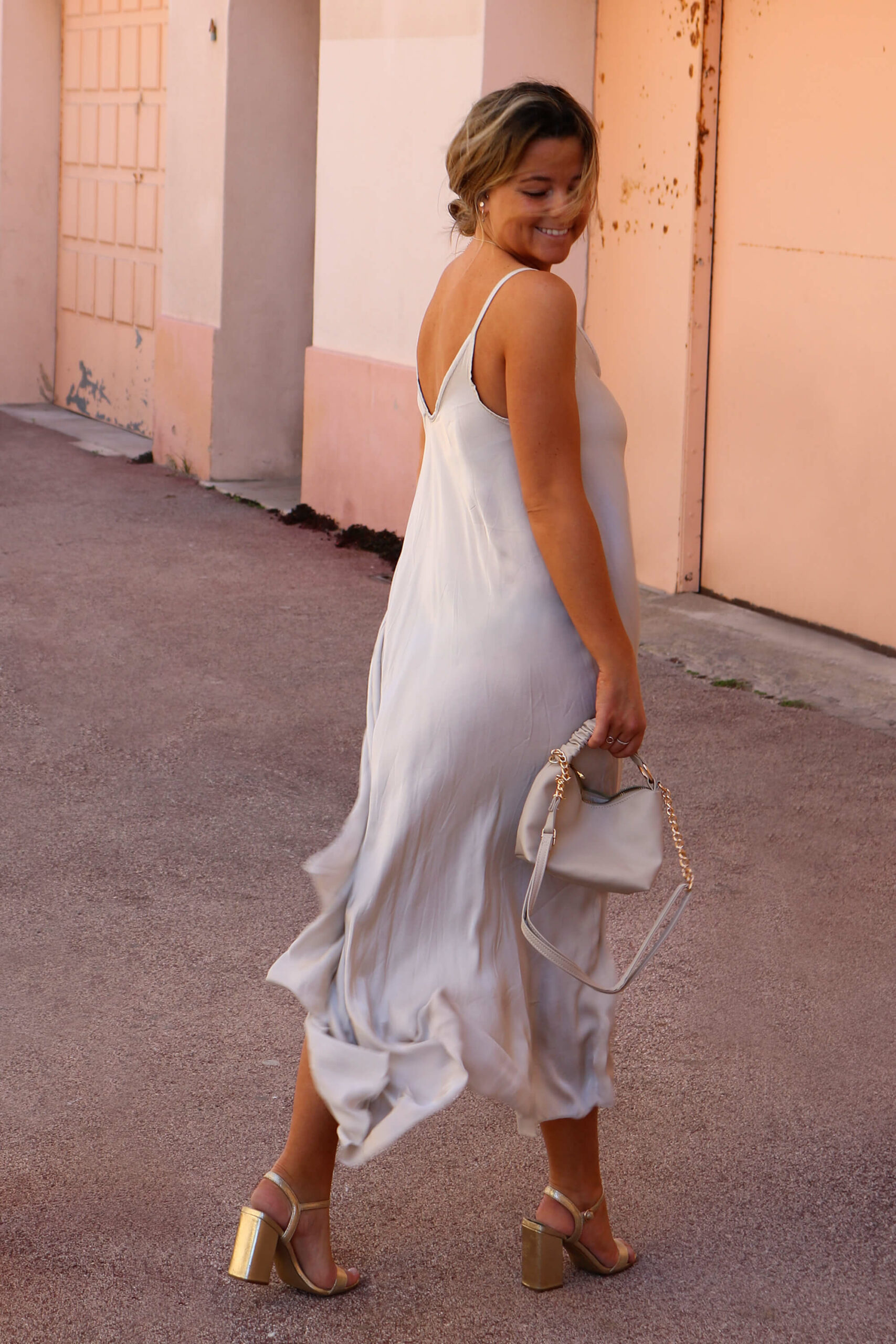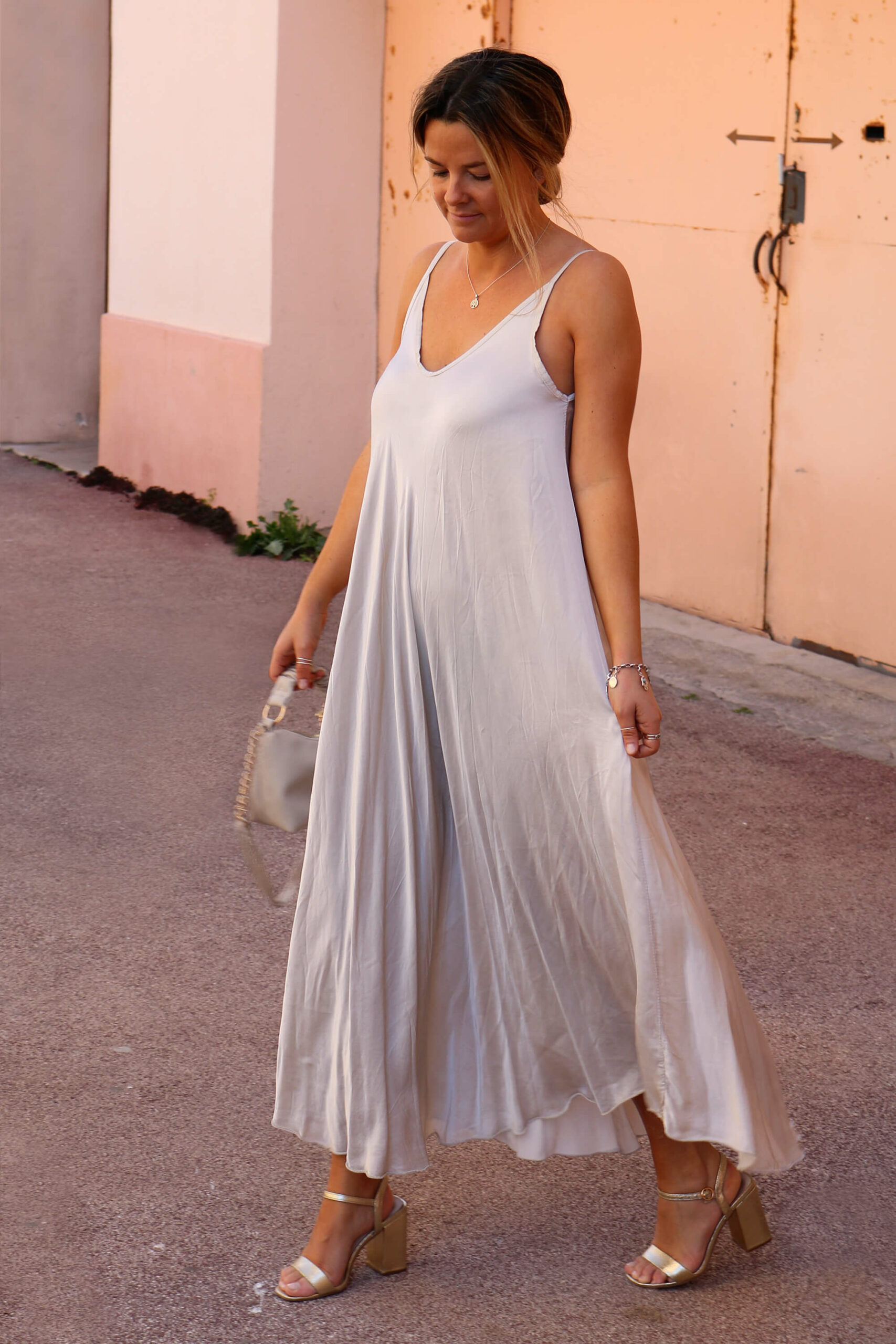 ROBE LONGUE EN SATIN IVOIRE – TEMOE